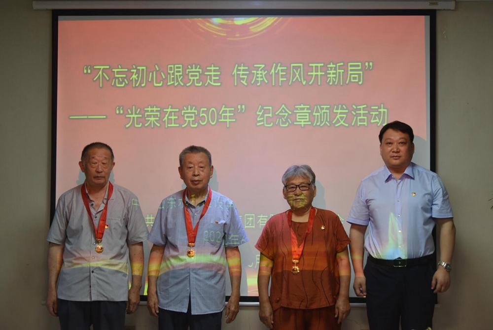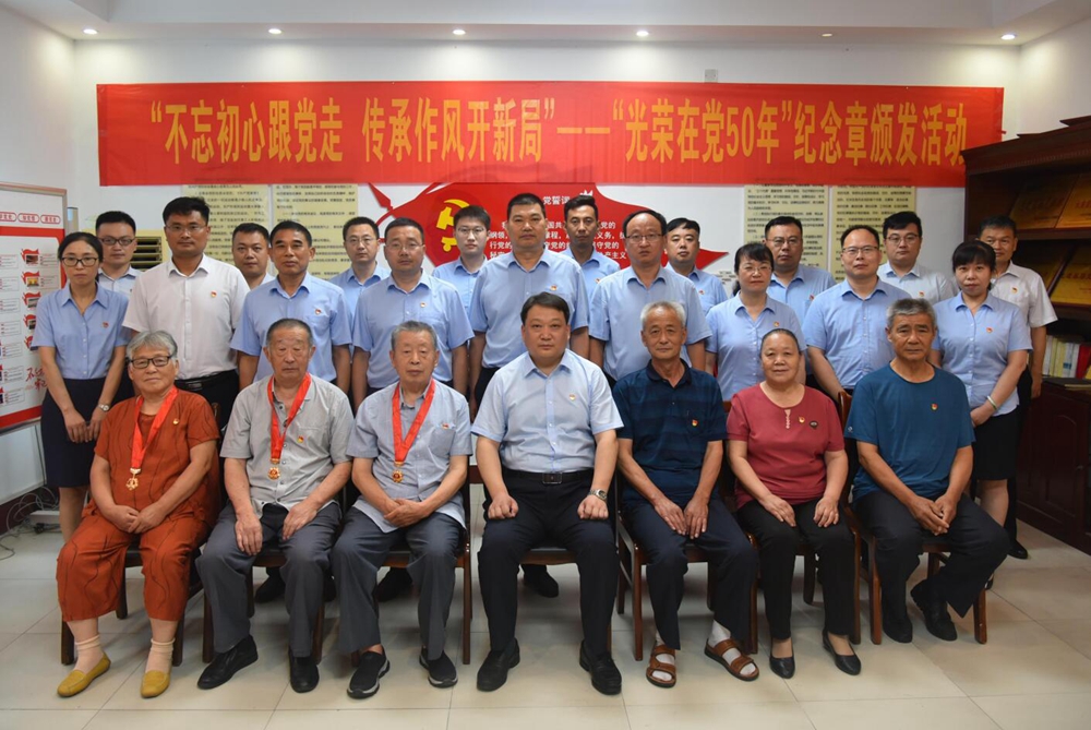 为光荣在党50年的老同志颁发纪念章,是纪念党的生日的重要活动,充分体现了党中央和习近平总书记的关怀和温暖。今年集团各级党组织中共有5位老党员获授“光荣在党50年”纪念章。6月27日,集团在水建公司组织开展了“光荣在党50年”纪念章颁发活动,老党员昃向利结合自身经历,回忆了其所在公司的发展历程和改革开放前期那段峥嵘岁月。在集团的发展历程中,老党员、老前辈坚守初心,辛勤工作,体现出了极高的党性觉悟、优良的工作作风和强烈的担当精神,集团各级党组织将进一步加强党建引领,充分发挥党组织的战斗堡垒作用和党员的先锋模范作用,从老党员的创业历程中汲取精神营养,激发新担当、展现新作为,以更加饱满的创业激情继续书写集团发展的壮丽篇章。