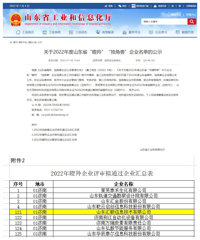 7月4日,山东省工业和信息化厅公示了2022年度山东省“瞪羚”企业通过名单,金年会技术汇颐科技凭借在企业综合效益、高质量发展等方面的突出成就顺利入选,在获得2022年度山东省“专精特新”企业基础上,获得2022年度山东省“瞪羚企业”荣誉称号。